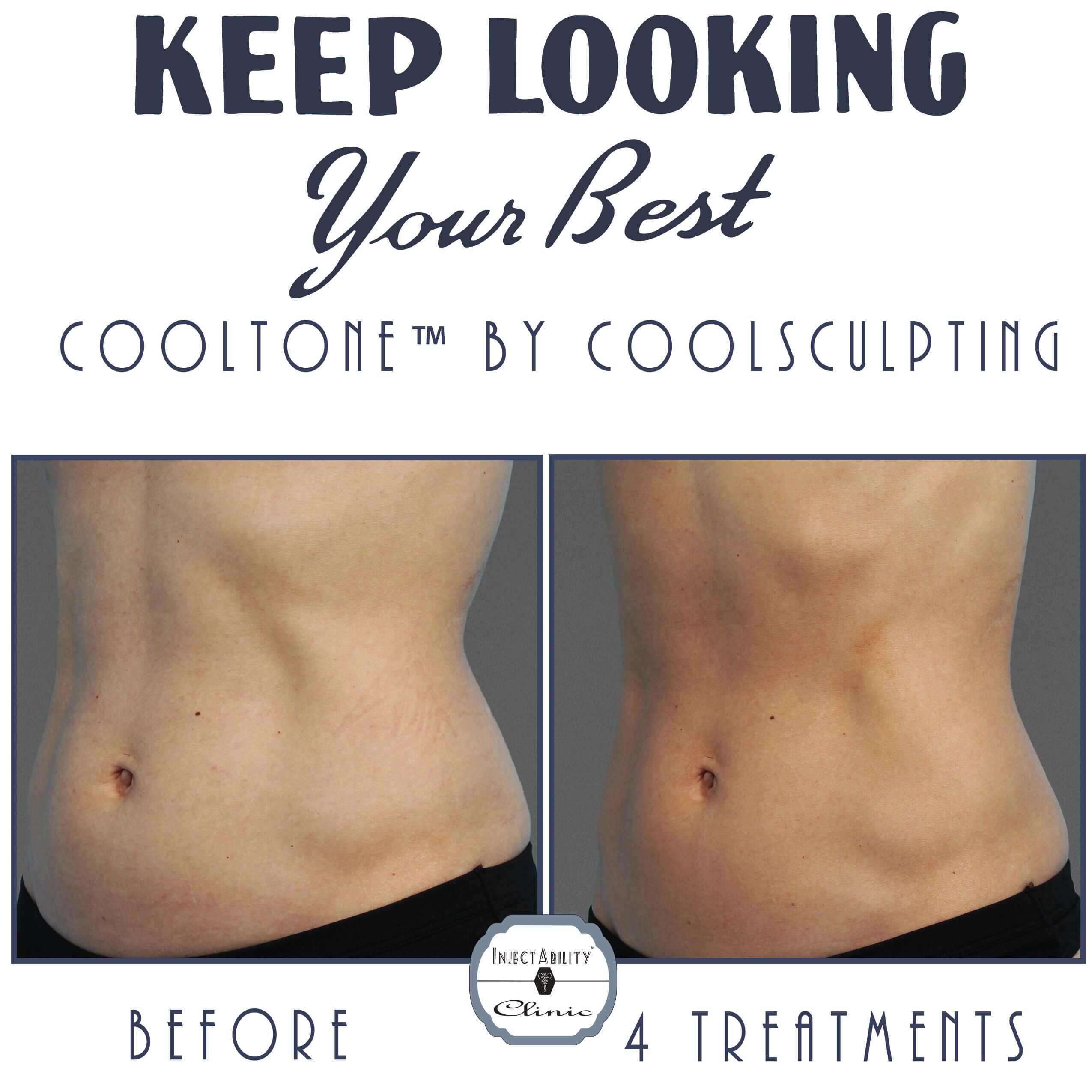 Results vary based on a number of factors, and we make sure to customize each treatment regimen based on the patient’s wants and needs. Most clients need to undergo a series of treatment sessions before they see the full effects of CoolTone. Eventually, the muscles should feel stronger and firmer and look more toned. While the treatment can be repeated regularly, the effects can also be enhanced through regular exercise and a healthy diet.